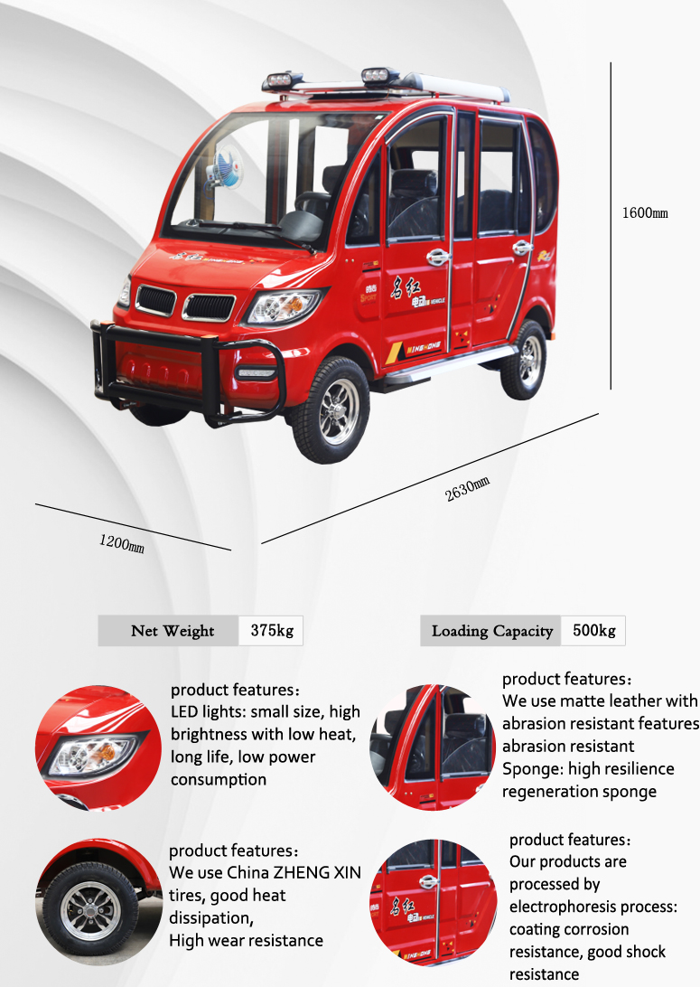 | Load Capacity | 500KG (3 Passenger+1 Driver) |